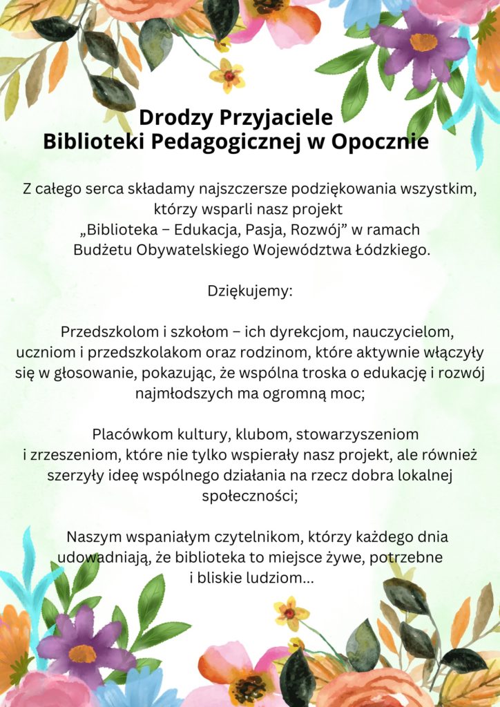 Kontynuujemy Biblioteczkę Inspiracji W imieniu Biblioteki Pedagogicznej w Opocznie oraz naszych Czytelników, składamy serdeczne podziękowania Firmie Ceramika Paradyż za kolejny rok wyjątkowego wsparcia i hojności, które niezmiennie przyczyniają się do rozwoju naszej społeczności i wzbogacają ofertę biblioteki w ramach akcji Biblioteczka Inspiracji Paradyż. Przekazane publikacje, pochodzące z renomowanego wydawnictwa MT Biznes, poruszają niezwykle aktualne tematy […]