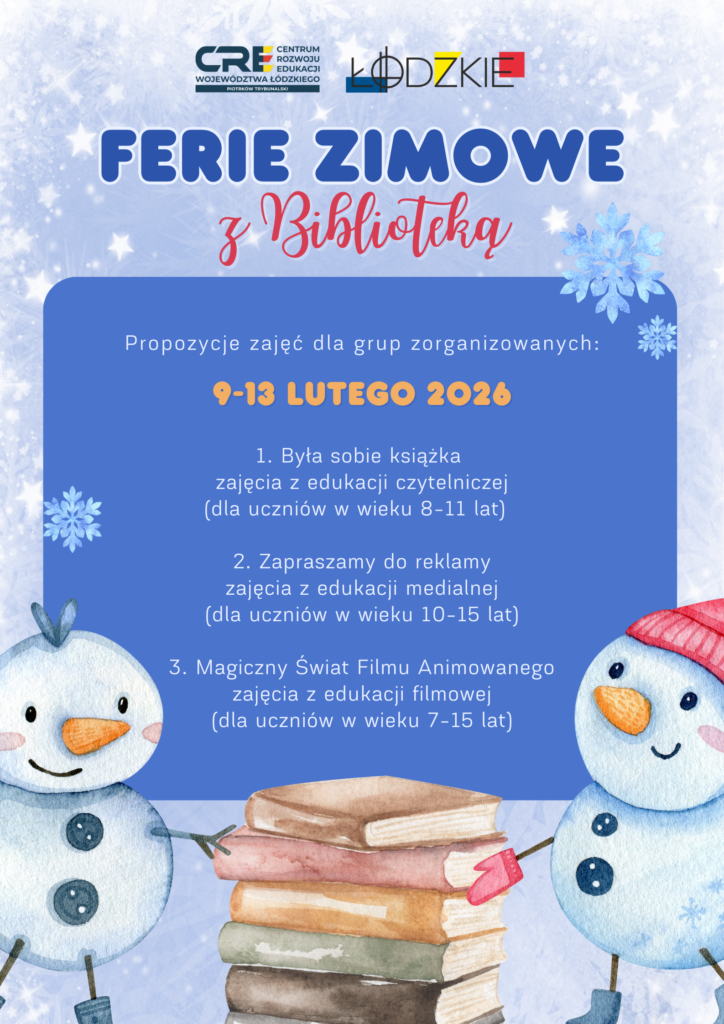Dzieci i młodzież spędzające drugi tydzień ferii zimowych (9–13 lutego 2026 r.) w mieście zapraszamy na ciekawe, angażujące zajęcia edukacyjne przeznaczone dla grup zorganizowanych.