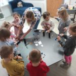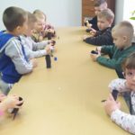 W pierwszej części spotkania, najmłodsze dzieci z grupy „Smerfy”, pod opieką Pani Karoliny, poznały historię pt. „Przygody pingwina Pingo: kreatywny recykling i tajemnicza skrzynia”. Dzięki narracyjnym kartom teatralnym, bajka przybrała formę mini-przedstawienia, w którym bohater uczył dzieci, jak w codziennym życiu można dbać o przyrodę i twórczo wykorzystywać niepotrzebne przedmioty, zamiast je wyrzucać. Dzieci z entuzjazmem dzieliły się swoimi pomysłami na recykling i zrozumiały, że ochrona środowiska to również troska o zwierzęta i ich naturalne siedliska.