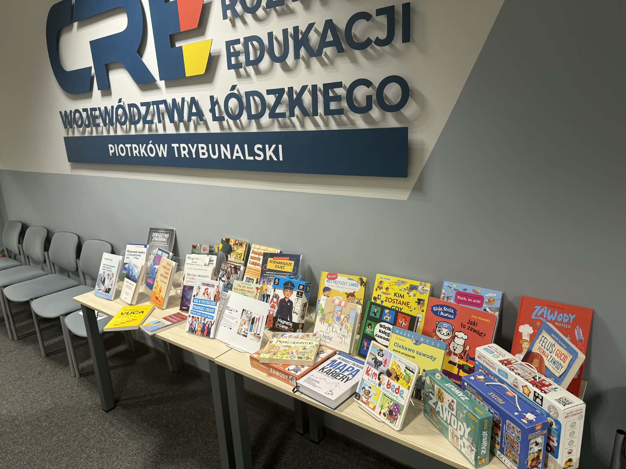 W ramach „Półeczki doradcy” można także wypożyczać gry planszowe dla najmłodszych uczniów – pomagające w przystępny i angażujący sposób poznawać świat zawodów oraz inspirować do myślenia o przyszłości.