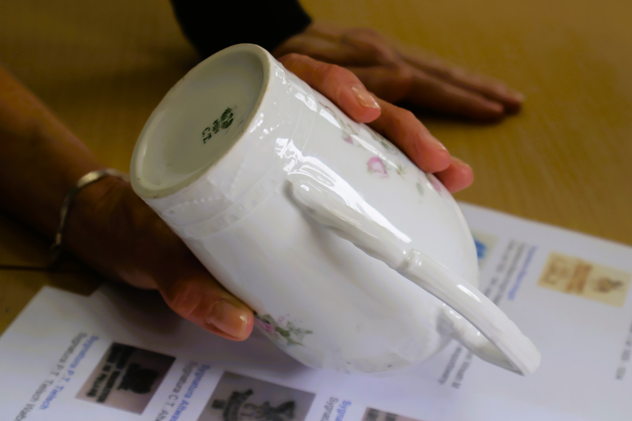 Wiele emocji wzbudziła część detektywistyczna, w której uczestnicy próbowali odczytać i rozszyfrować sygnatury na porcelanie. Z drobną pomocą pani Karoliny Kalinowskiej i przygotowanych materiałów seniorzy niczym prawdziwi badacze rozszyfrowywali znaki, style i datowania. Najbardziej spostrzegawczy detektywi porcelanowi zostali nagrodzeni zestawami… duńskiej porcelany! 🇩🇰