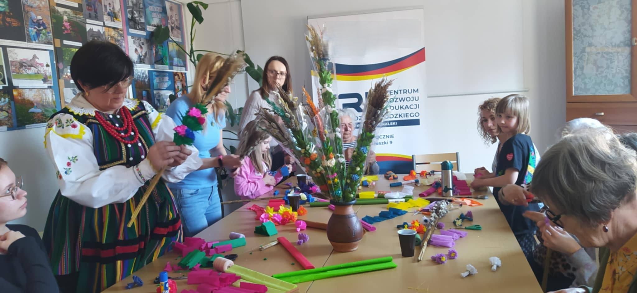 Pod czujnym okiem Pani Bożeny powstawały prawdziwe dzieła sztuki ludowej – kolorowe, ręcznie robione palmy, pełne symboliki i piękna zakorzenionego w lokalnej tradycji. Każdy uczestnik miał szansę nie tylko nauczyć się techniki tworzenia, ale także odkryć, jak wiele radości i spokoju może nieść praca własnymi rękami.