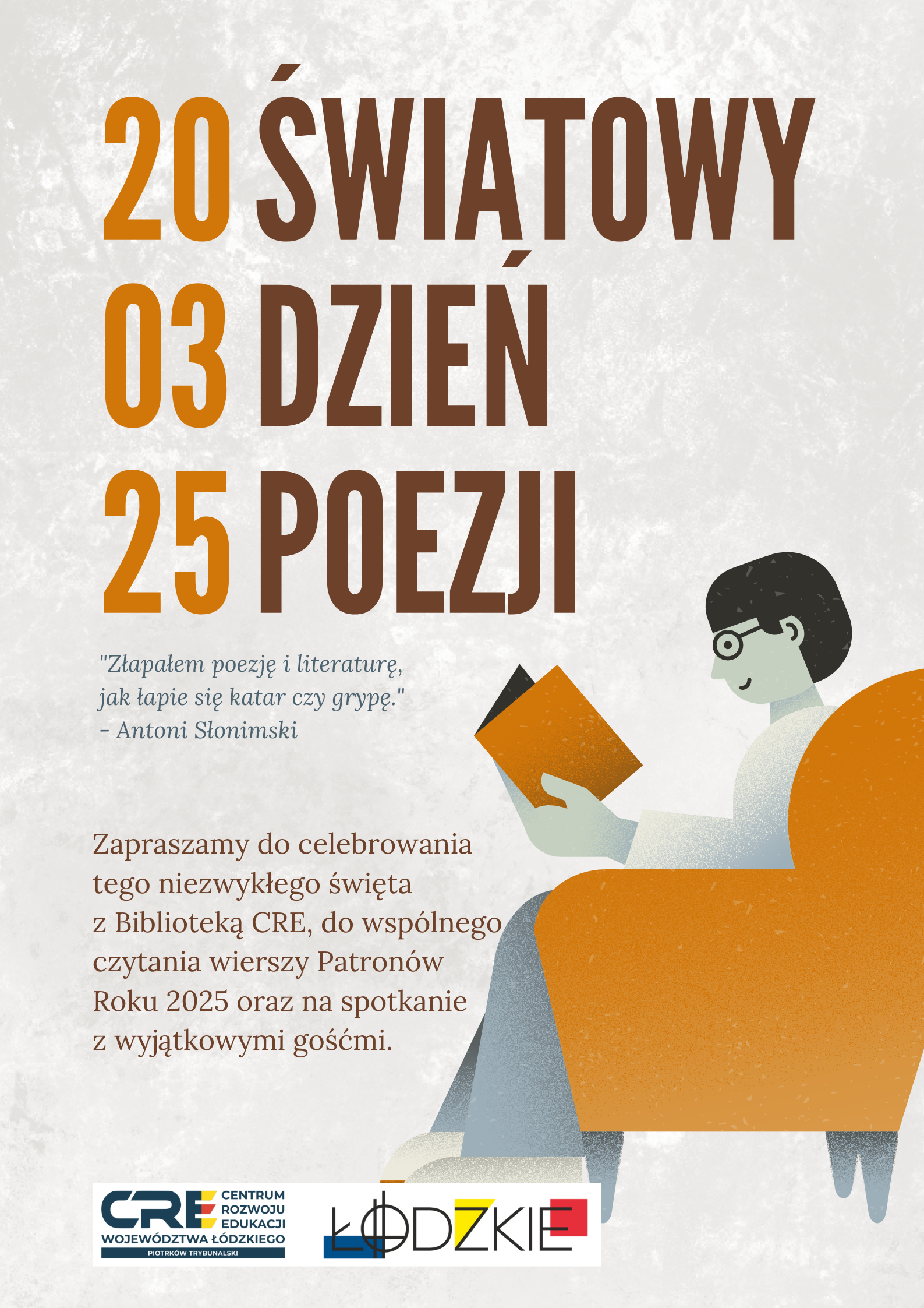 Zapraszamy do celebrowania tego niezwykłego święta z naszą biblioteką, do wspólnego czytania wierszy Patronów Roku 2025 (Marii Pawlikowskiej-Jasnorzewskiej, Antoniego Słonimskiego, Józefa Tischnera) oraz na spotkanie z wyjątkowymi gośćmi. 20 marca (czwartek) nasza siedziba zamieni się w kameralną scenę, pozwalającą uczestnikom na relaks i intymne przeżywanie czytanych utworów.